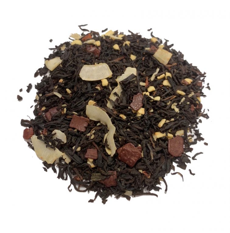 Sort the med chokolade og kokos gør denne til en sart-cremet the oplevelse. Theen indeholder chokoladestykker, hvid chokolade og kakaobønner herudover kokoschips og naturlig aroma.