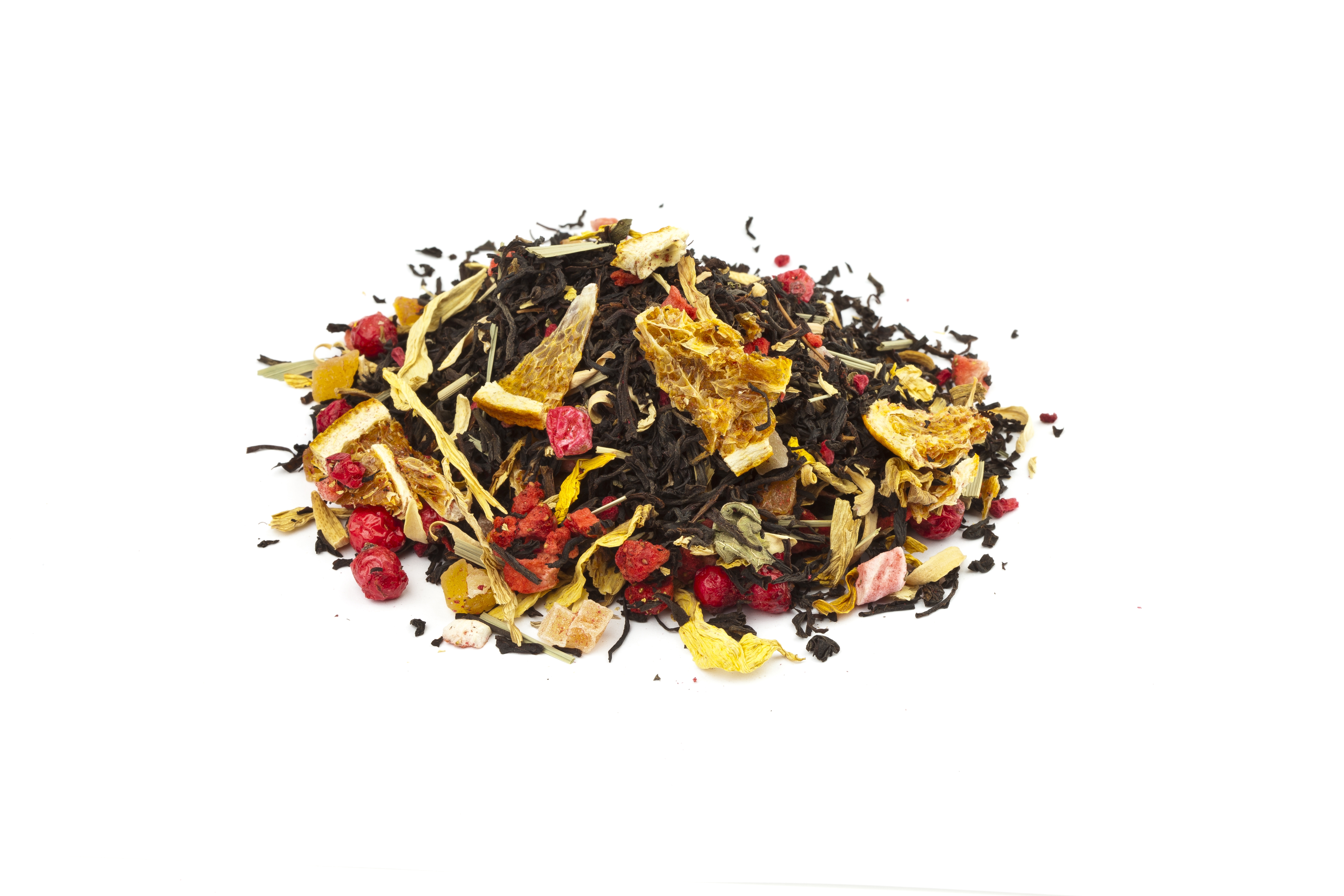 Sort the fra Kina og Ceylon med orange-, hindbær- og mangostykker. Endvidere med jordbær, solbær, solsikkeblomster, citrongræs og nat. aroma. En frisk og frugtet smag – næsten eksotisk. Garvesyre: svag Trækketid: 4-5 minutter Vandtemperatur: 100 grader. Dosering: 2 g pr. 200 ml.
