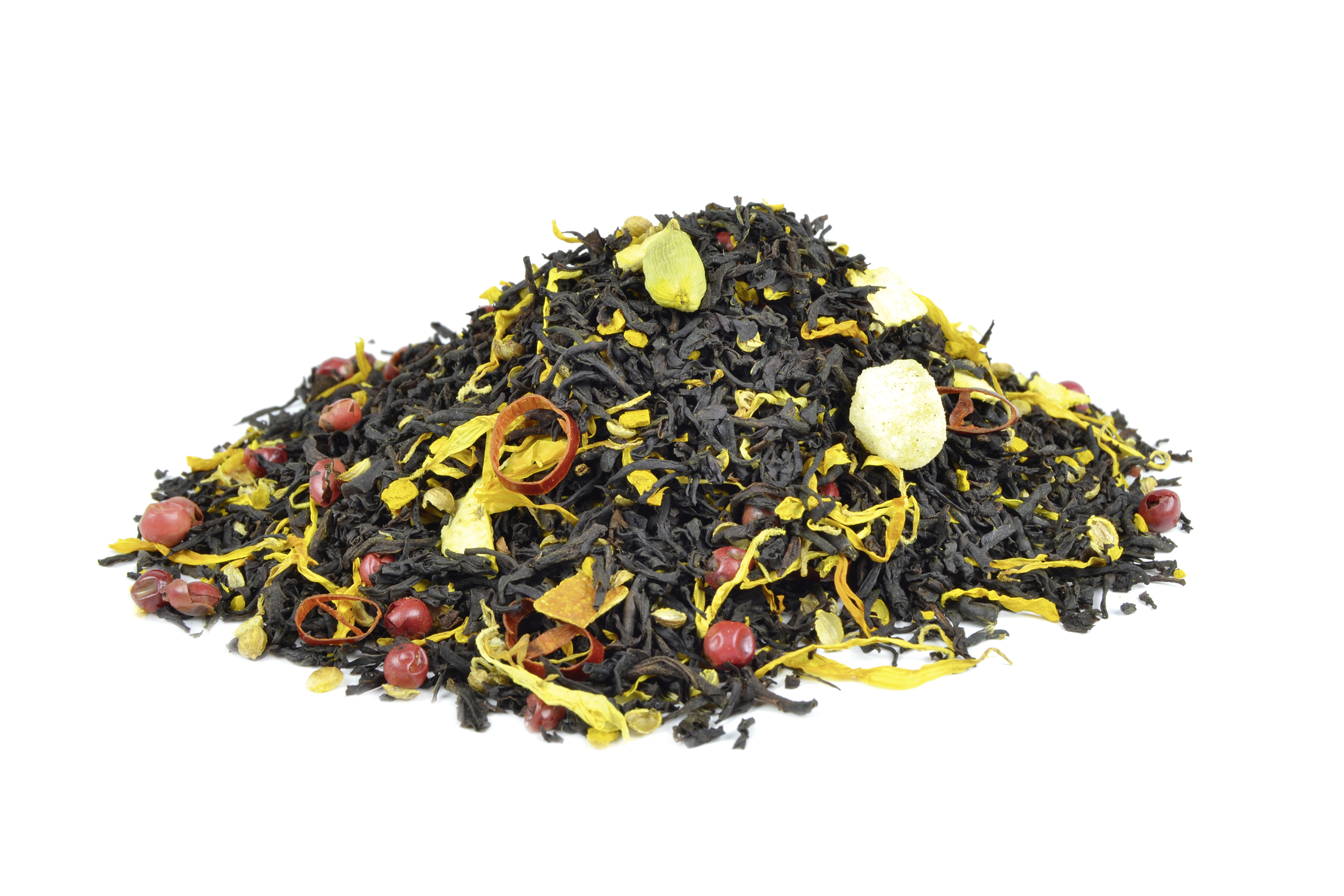 Sort the fra Kina og Ceylon med orange-, hindbær- og mangostykker. Endvidere med jordbær, solbær, solsikkeblomster, citrongræs og nat. aroma. En frisk og frugtet smag – næsten eksotisk. Vores forårste i påskedagene! Garvesyre: svag Trækketid: 4-5 minutter Vandtemperatur: 100 grader. Dosering: 2 g pr. 200 ml.