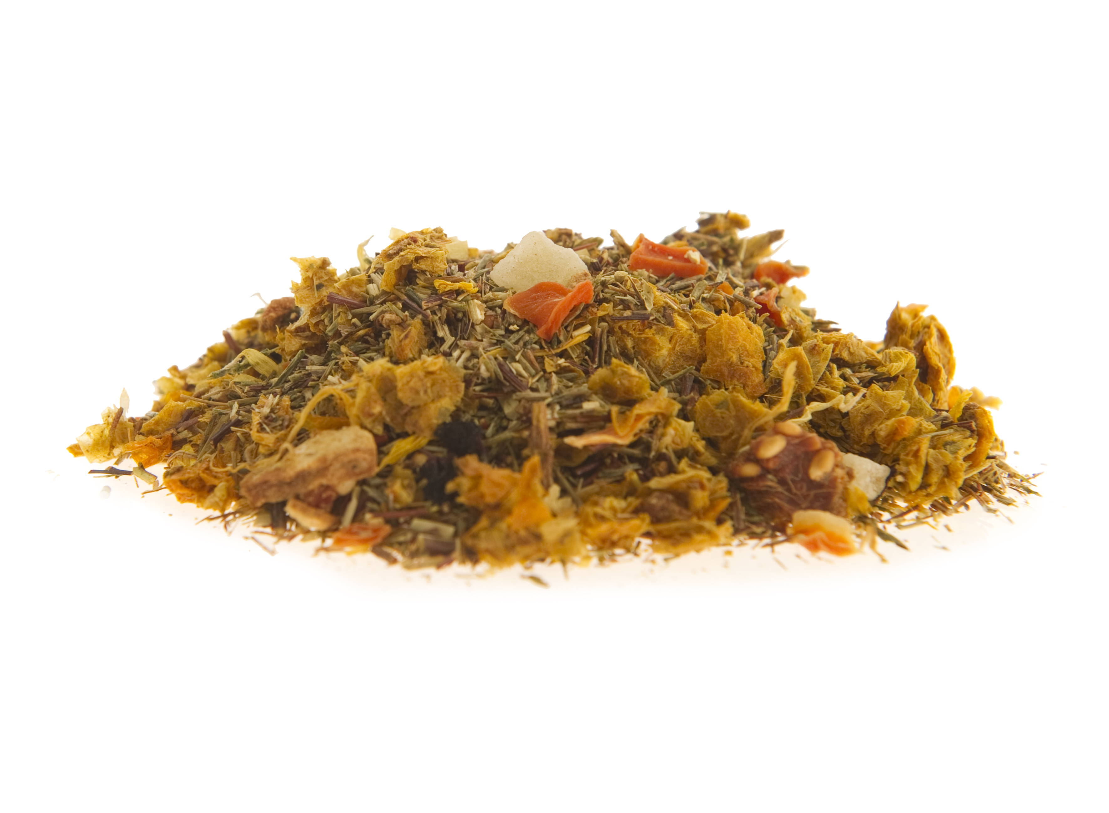 Havtorn bær, gulerods- og guave stykker samt morgenfrue blomster og naturlig aroma. Naturens egen vitaminpille med masser af antioxydanter – og så smager den også rigtig godt! Garvesyre: ingen Trækketid: 5-10 minutter Vandtemperatur: 100 grader